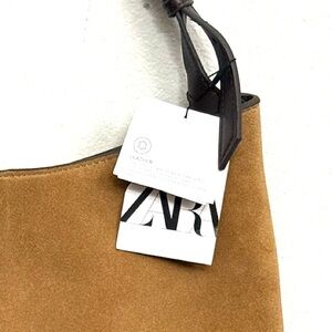 NWT ZARA Suede Leather Shoulder Bag – Brown Cowhide & Camel - Equestrian Boho