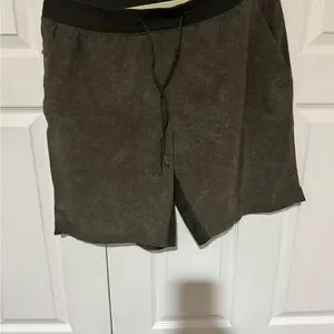 lululemon athletica Olive Drawcord Athletic Shorts with Black Waistband