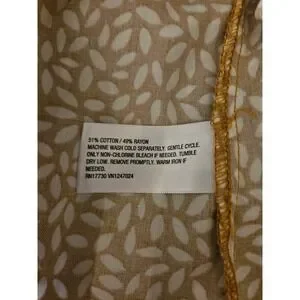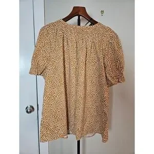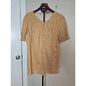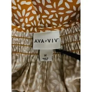 Ava & Viv Womens Plus 1X Yellow Print Smocked Neck Puff Sleeve NEW Boho Peasant. Lightweight cotton-blend blouse features a vibrant yellow/golden and white leaf print.