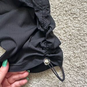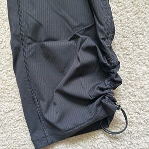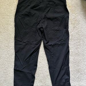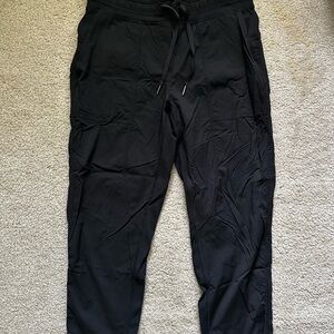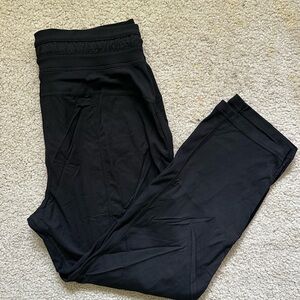 Stylish black track pants by Lululemon. Comfortable and versatile for everyday wear.