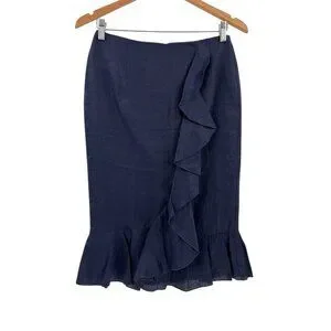 BODEN Women's Navy Linen Ruffle Front & Hem Straight Skirt US 4