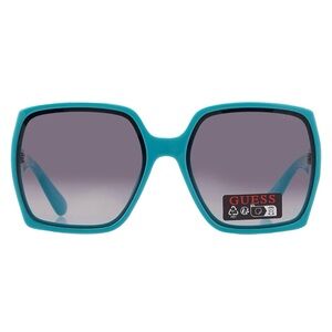 Oversized Square lens GUESS sunglasses with turqoise frames and gold foil logo embossed detailing. Perfect for a modern look.