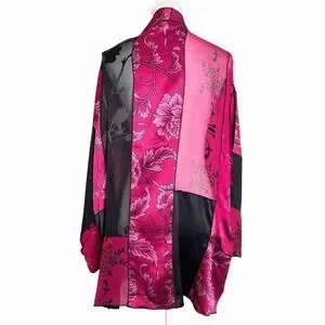 Units Vintage Silk Blend Kimono 1X Pink Black Floral Open Jacket Whimsigoth