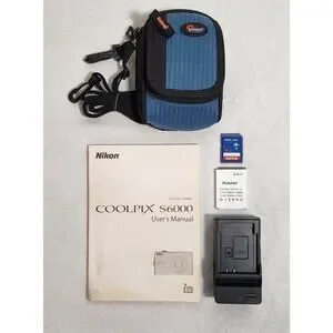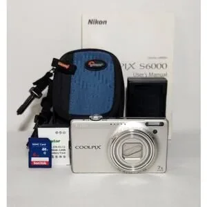 Keywords: Nikon, Coolpix, S6000, 14.2 mp, silver, charger, SDHC card, camera bag, digital camera, 7 x wide optical zoom