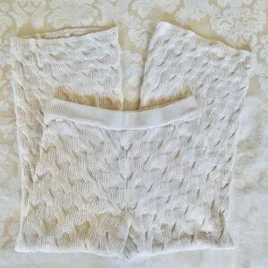Rachel Comey cream high-rise wide leg knit palazzo pants, size Large. These thick ivory sweater pants have a cable-style wavy textured pattern, in a soft, comfy mix of of cotton, nylon and wool. High rise, with a wide, stretchy waistband, wide leg silhouette, and pull-on style. Perfect for lounging and elegant enough to wear out and about, with a classic trad knitwear vibe. EUC.