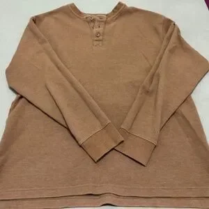 • Brown waffle knit long sleeve henley