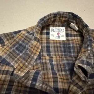• Plaid flannel button-up shirt