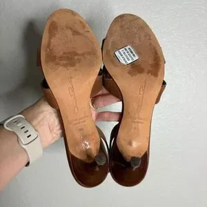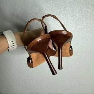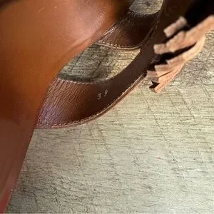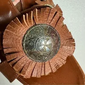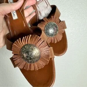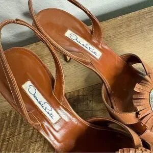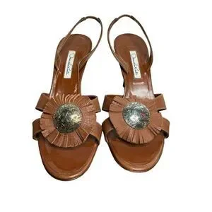 Vintage Oscar de la Renta Brown Leather Fringe Medallion Slingback Heels – Size 39