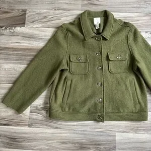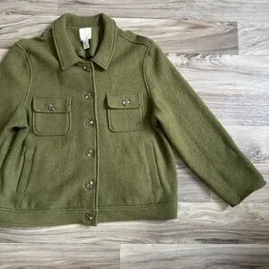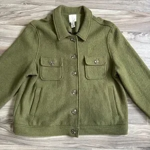 Joie Olive Green Wool Blend Boiled Wool Shacket Jacket Size XL