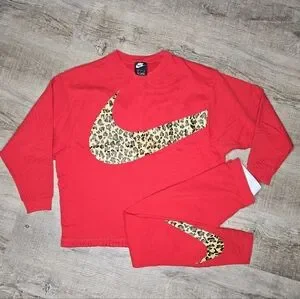 Nike Red Sweater With Leopard Accent And Matching Leggings Woman Size Small