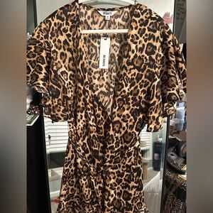 NWT BB Dakota Wild Card Animal Print Wrap Ruffle Dress in size Medium