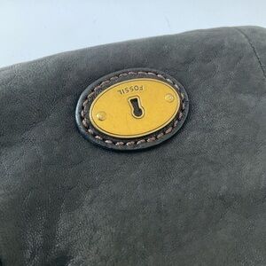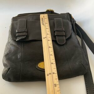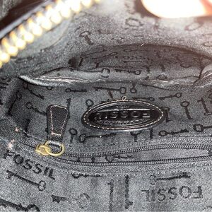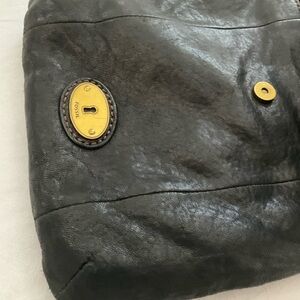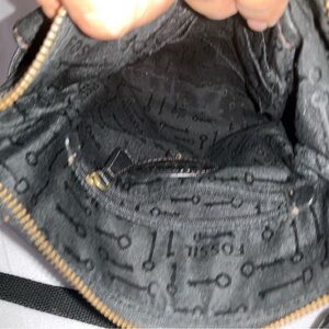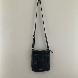 Fossil Black Leather Crossbody with Brass Accent