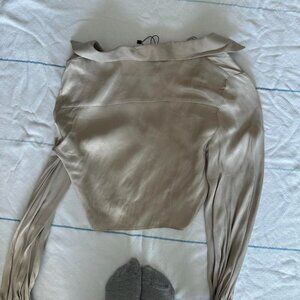 satin, deep v-neck, long sleeve, gold, going out, elegant, shiny, formal, new with tags, luxe