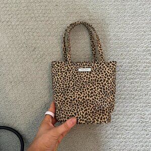 Brown and tan cheetah print tote bag vintage. bucket bag. has shoulder strap inside that is attachable. #vintage #minipurse #y2k #leopard #cheetah
