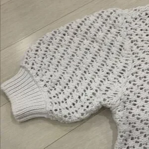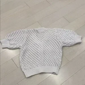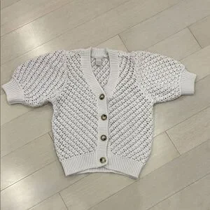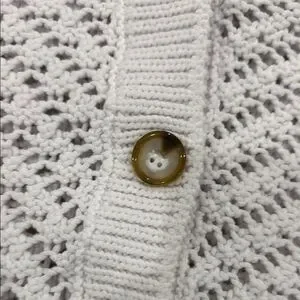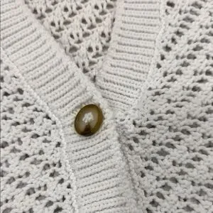 Chic white cardigan with a button-up front. Features a textured knit design. Perfect for layering.