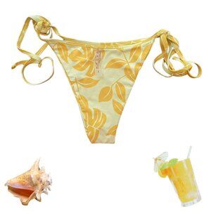 Tropical Yellow Orange String Bikini Bottom XS Floral Swimwear Beachy Y2K