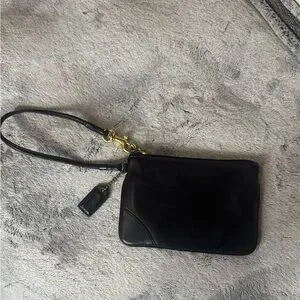 Coach Black Smooth Leather Wristlet - Vintage Y2K