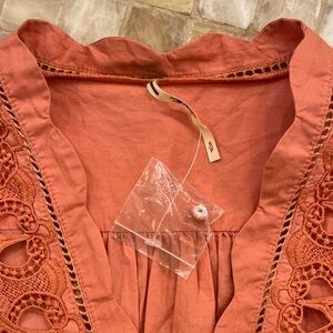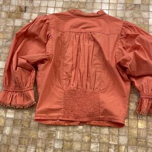 Free People prairie style Button-Front blouse with embroidered detail. Size S/P