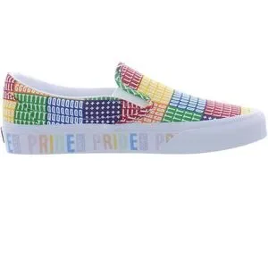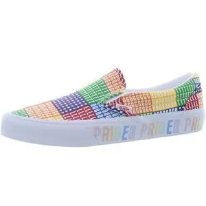 Vibrant patchwork design. Slip-on style. Comfortable and stylish.