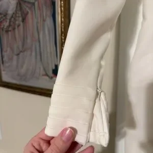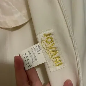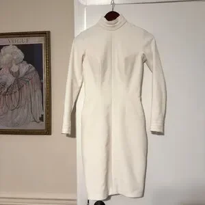 Chic cream Jovani Couture dress with long sleeves. Features a stylish turtleneck. Perfect for pageant interview or bridal!