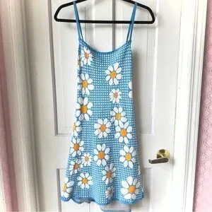 Zara Blue Gingham Daisy Knit Mini Dress Size Large