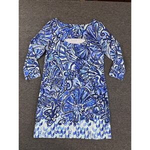 Lilly Pulitzer Dress Womens Large Blue Floral Pima Cotton Holler Zanzibar Zoo
