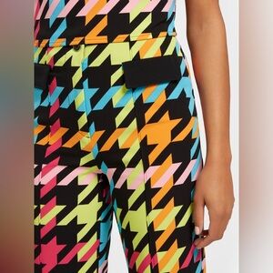 Bold houndstooth flare pants from New York & Company. Stretchy fabric for easy movement. High-impact multicolor print adds playful flair. Flared legs create a retro-inspired silhouette. Pair with a solid top to balance the look. Never worn. Excellent condition!