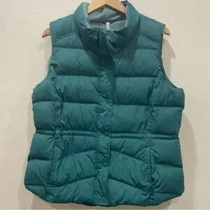 Old Navy Teal Puffer Vest Women’s XL Snap Front Quilted Winter Fleece Lined