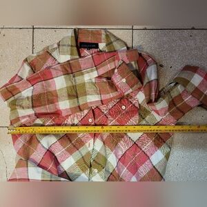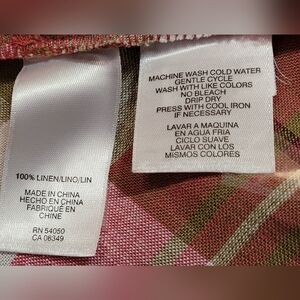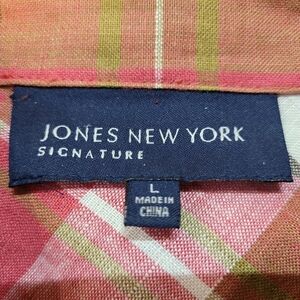 Jones New York Signature Plaid Button Shirt in Pink, Olive & Cream 100% Linen