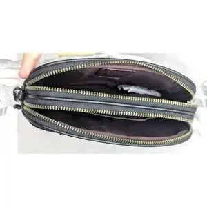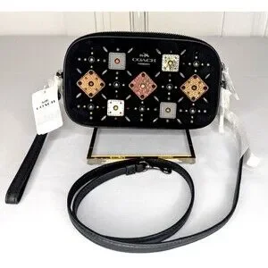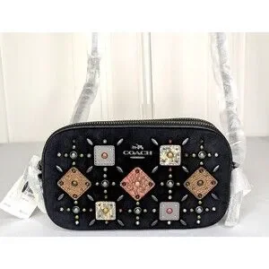 The Coach Prairie Rivets Crossbody in black suede with leather patches is a stylish and practical accessory for women. This crossbody features a zip-around closure and credit card slots, making it perfect for on-the-go use. The designer brand and edgy style, incorporating biker, rock, and punk themes, give it a unique and trendy appeal. Made with high-quality leather and suede leather patches, this crossbody is sure to add a touch of sophistication to any outfit.