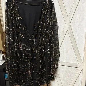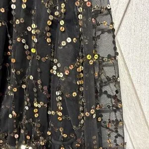 Elegant black dress adorned with shimmering sequins. Perfect for evening events.