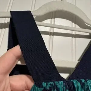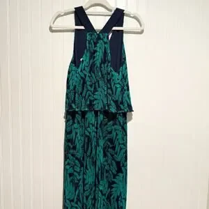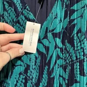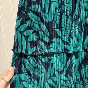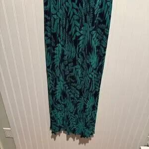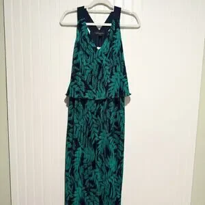 Banana Republic Fern Print Layered Pleated Maxi Dress Navy Blue Green NEW Medium