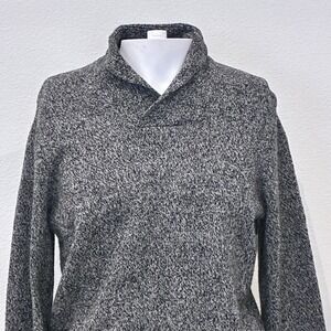 Eddie Bauer Mens Fisherman Cowl Neck Wool Blend Sweater Size M Black Marled Cozy