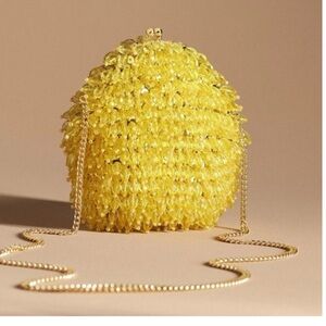 Shimmer and shine with this elegant yellow beaded evening bag. Perfect for adding a touch of glamour to any outfit.