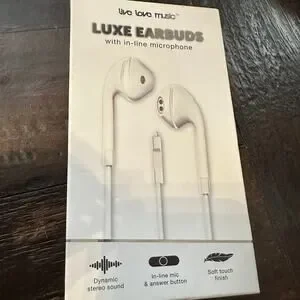 Live Love Music Luxe Earbuds White In-Line Mic Soft Touch 3.5mm Wired Headphones