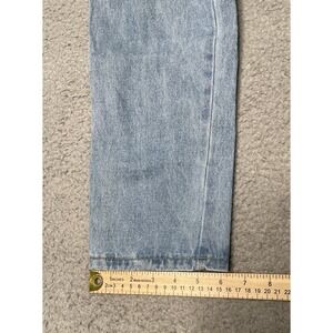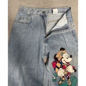 These vintage 90s Disney Mickey Mouse Jerry Leigh jeans are a must-have for any hipster, preppy, or cartoon-loving woman. The solid blue denim fabric with a light wash and 5-pocket design make them a versatile addition to any wardrobe. The high-rise fit and straight leg style provide both comfort and style, while the zip closure ensures easy wear.