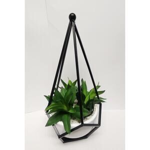 2pc Decorative Geometric Diamond-Shaped Metal Frame Artificial Indoor Plants