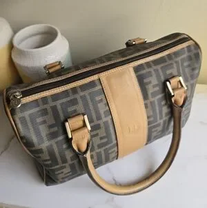 Vintage Fendi Zucca Brown Monogram Canvas Top Handle Boston Bag