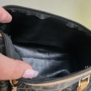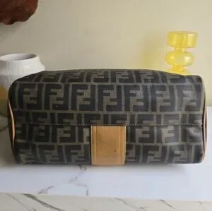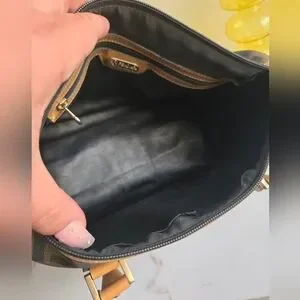 Used but, in good shape. Shows signs of wear: rubbing at trim edges, minor marks throughout at exterior, discoloration at hardware. Interior shows some missing lining at top by zipper. Interior zipper pocket is in great condition, no peeling. Zipper works great. Handles show some rubbing or scratches but overall vachetta leather looks great for her age. Comes with original dustbag with drawstrings. Drawstrings hardware with Fendi logo stamp. Trying to be as transparent as possible. Ask questions and look at pictures.