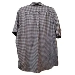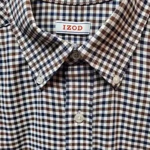The IZOD Short Sleeve Button Down Shirt in size XL features a classic check design with a button-down collar and chest pocket, perfect for a coastal classic look. Made from a comfortable cotton blend knit fabric, this breathable shirt is easy to care for with two extra buttons included for convenience. Ideal for travel or casual occasions, the shirt is adorned with a golf theme, making it a stylish choice for the summer, fall, or spring seasons.