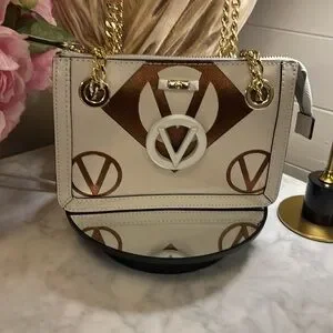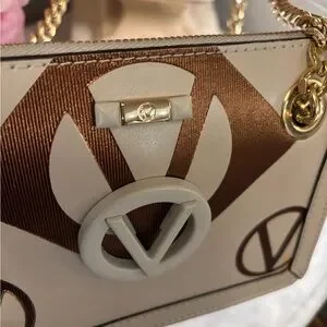 EUC Valentino White and Brown Shoulder Bag with Gold Chain