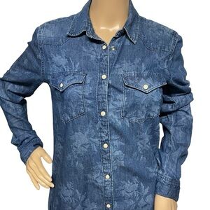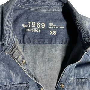 GAP 1969 Blue XS Floral Print White Pearl Snap Button Denim Dress in EUC