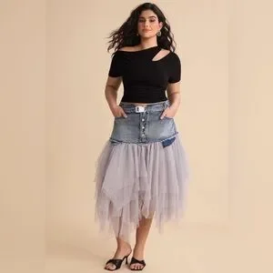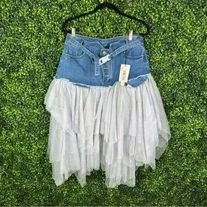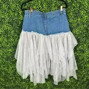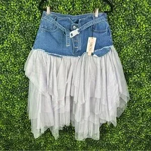 Nwt Micas Denim Mesh Patchwork High Waist denim and tulle Skirt