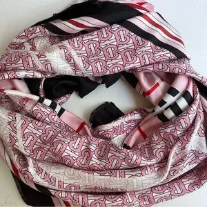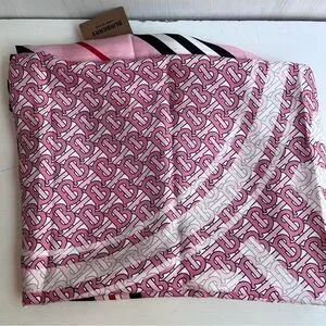 BURBERRY TB Monogram Heritage Square Silk Scarf in Bubblegum Pink