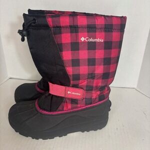 Columbia Powderbug Kids Size 5 Pink & Black Plaid Waterproof Snow Boot