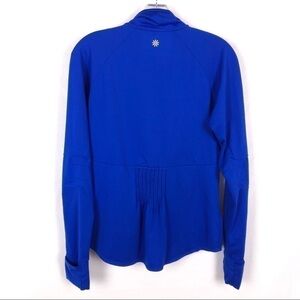 Athleta Half Zip Pullover Blue Jacket! Neon yellow zipper detail. One zip pocket on front. Thumb holes. Fold over fabric to keep fingers warm when running.