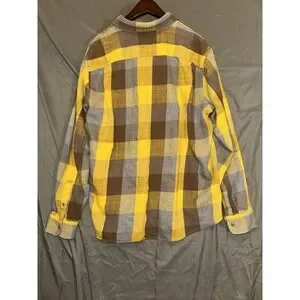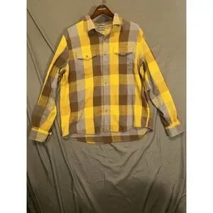 Pre-owned L.L. Bean Signature Flannel Shirt Mens XL Slim Fit Plaid Button Up Yellow Gray