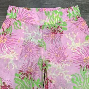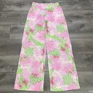 Lilly Pulitzer Mid Rise Wide Leg Pants Pink Green Size Small