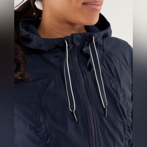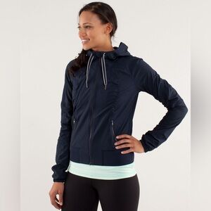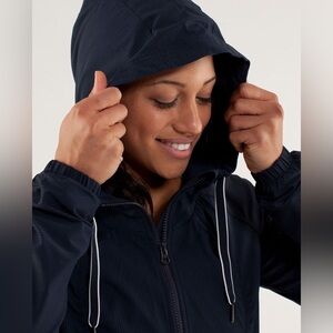 LULULEMON Street to Studio jacket in Inkwell. Lightweight Swift fabric jacket with hood. Water repellent fabric. Zipper front pocket, closure. Attached hood with cinch.Lined. Retailed for $108.