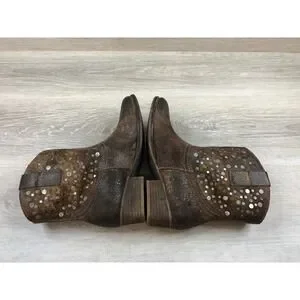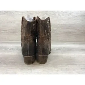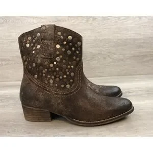 Diba True Flying Solo Women's Brown Leather 6.5 Studded Ankle Western Pull On
